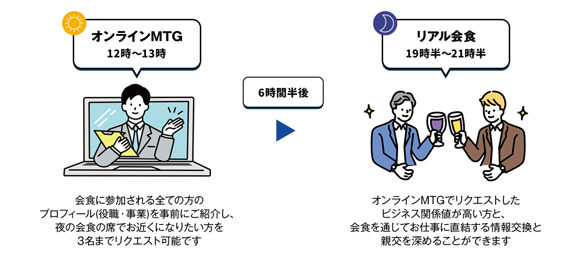 自己紹介タイムでは、参加者のビジネスプロフィールとして、ご自身の役職や管掌領域、サービスの概要を参加者の方にご紹介頂きます。 す。